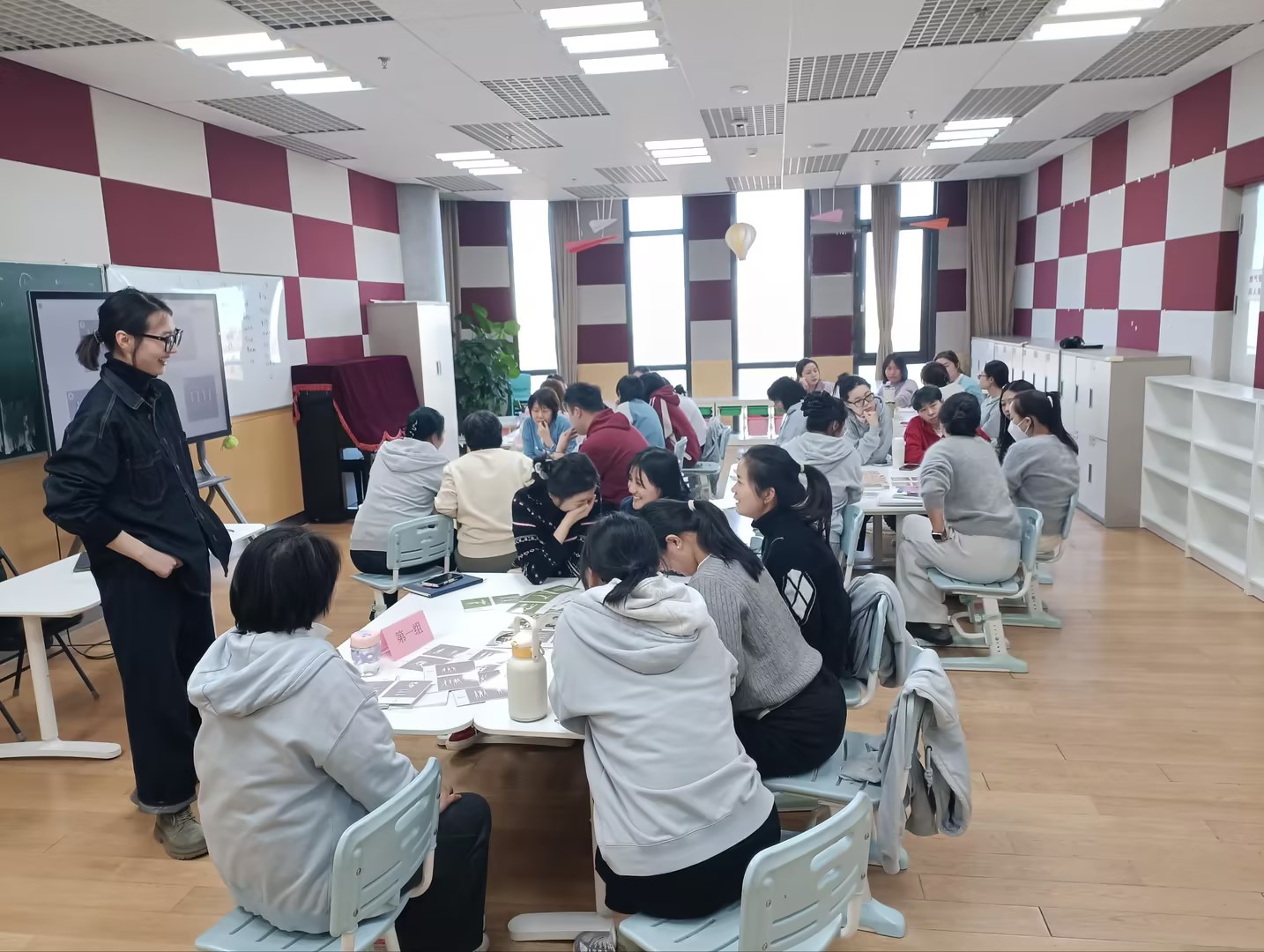 培训开场前,老师们被分成不同小组,每个小组随机选取测验中的图卡,然后以“人体雕塑”的形式,生动演绎图卡上的内容。这一活动设计,不仅充分调动了在场全体教师的参与热情,更让大家在沉浸式体验中,真切感受到图卡中人物的细腻情绪和丰富情感,从而更深层次地领略到赛克测验的独特魅力。